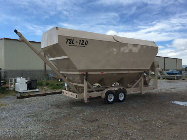 The 7SL-120 metal silo for sale is a portable cement silo with a capacity of 300 barrels (55 tons). It can load up to 2,500 lbs of cement per minute with the optional 8-inch auger and 700 lbs per minute with the standard 6-inch auger. Air fluffer system and 25 hp hydraulically driven auger included.